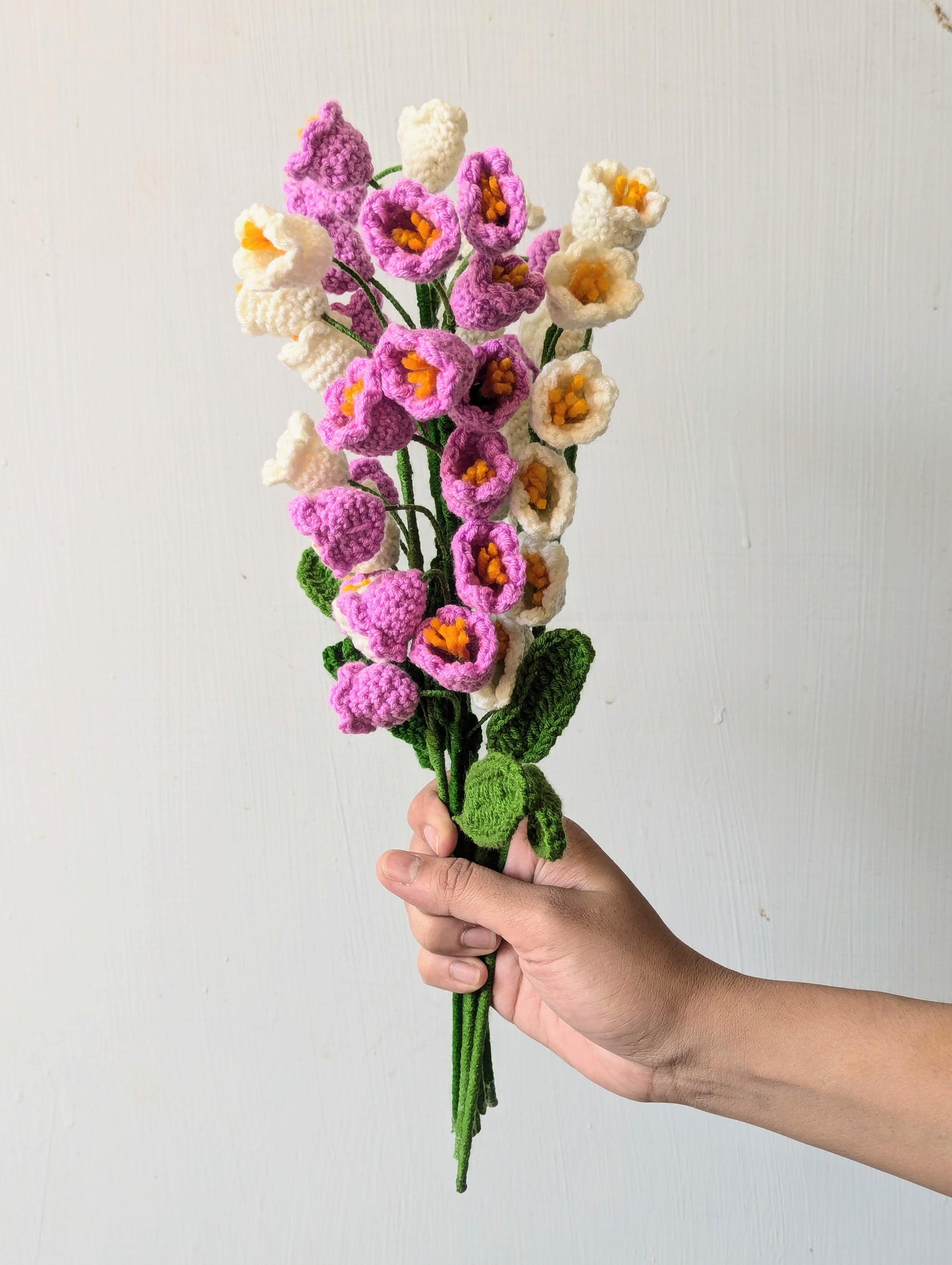 Bring a touch of elegance and calm into your space with our handcrafted Crochet Lily of the Valley Bunch. Each bunch includes 7 delicate stems, and every stem features 5 tiny bell-shaped flowers and a soft crochet leaf β all handmade with care by skilled women artisans.