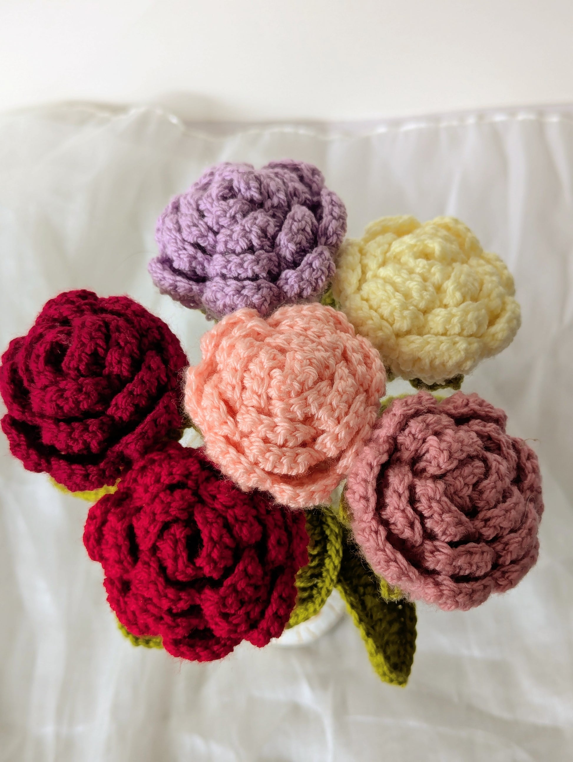 A bunch of handmade crochet roses, crafted with care to capture the romance and elegance of nature’s most beloved bloom. Available with or without a vase, these everlasting roses are a graceful symbol of beauty that never fades.