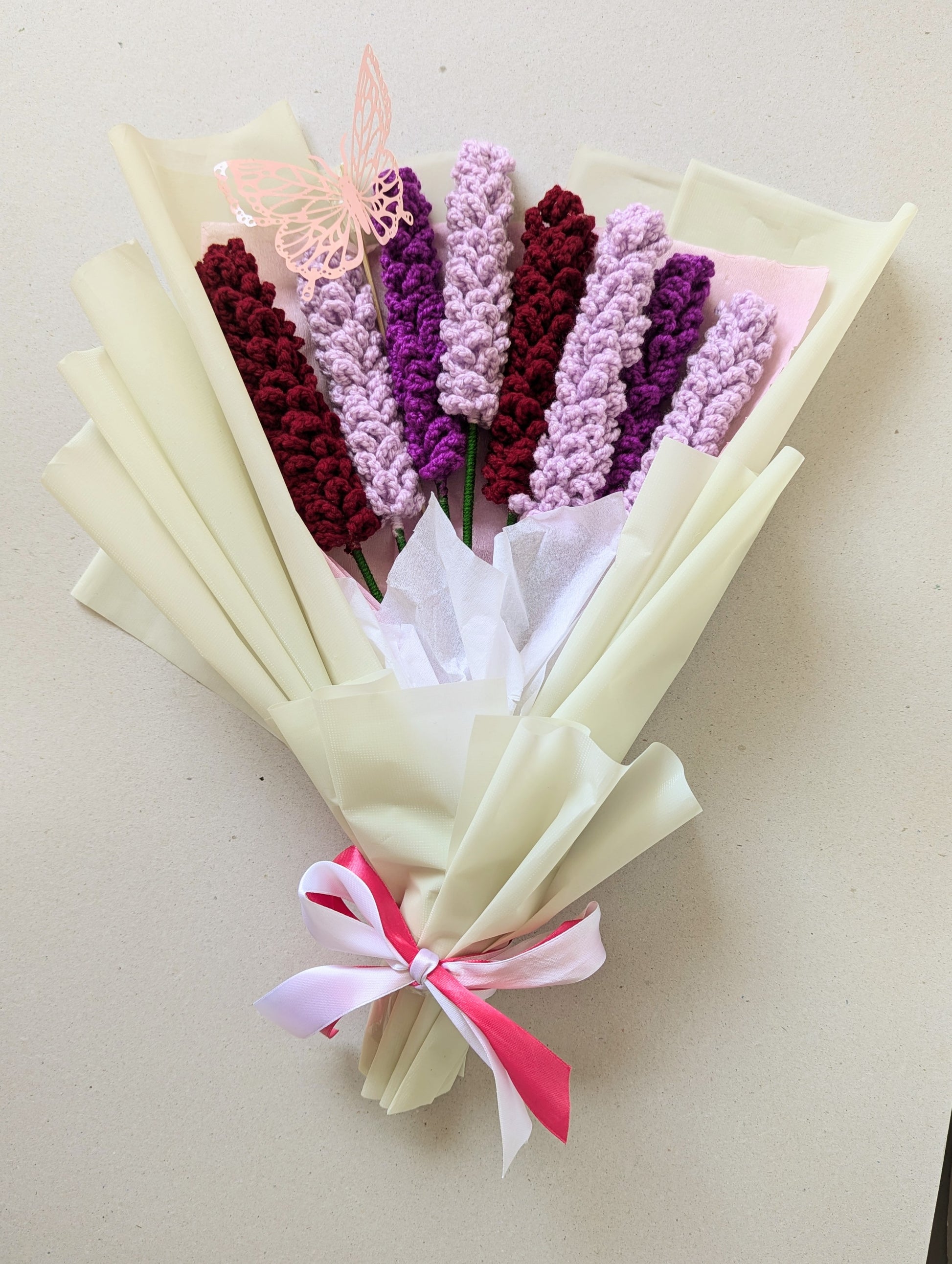 Bring the calm beauty of lavender fields into your home with our handmade crochet lavender bouquet. Each stem is delicately crafted with fine yarn, capturing the soft hues and natural charm of real lavender — but made to last forever.