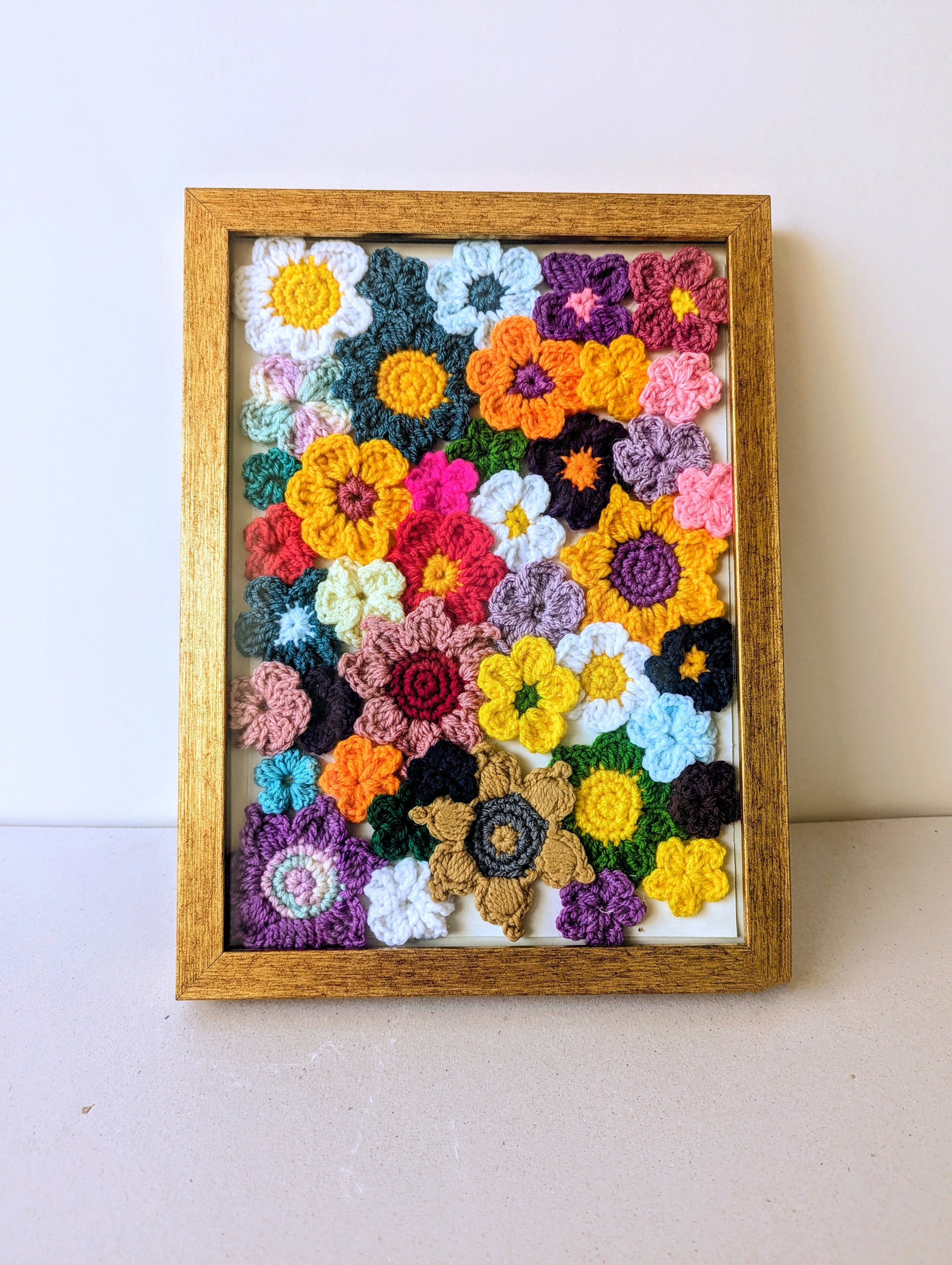 A timeless piece of handmade art — The Bloom Frame showcases delicately crocheted flowers arranged inside a clean, modern frame. Made entirely by hand, it adds a soft, natural touch to your décor while celebrating the art of crochet.